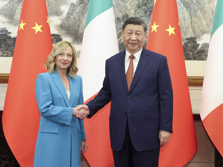 7月29日下午,國家主席習近平在北京釣魚臺國賓館會見來華進行正式訪問的意大利總理梅洛尼。新華社記者 丁海濤 攝
