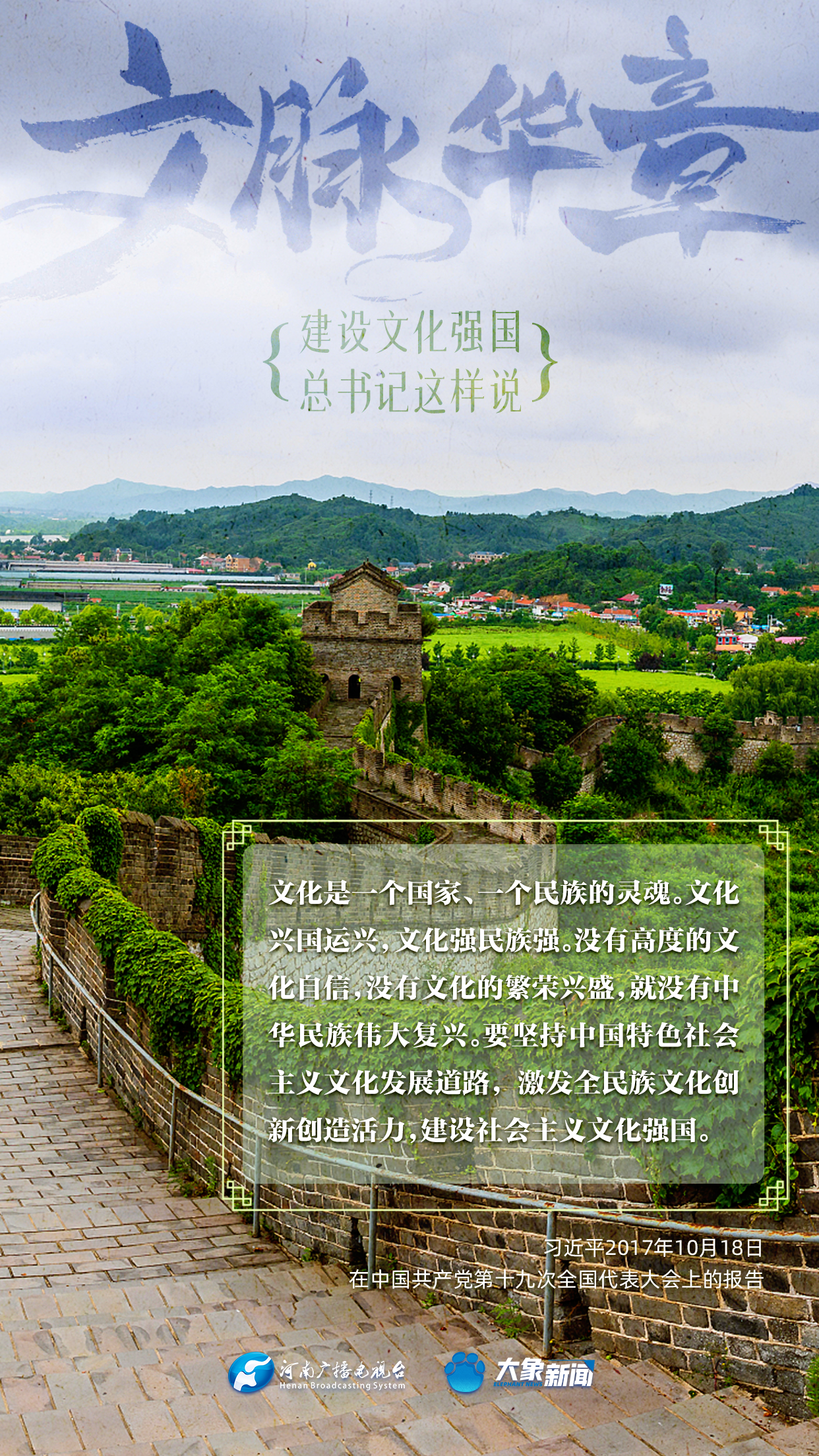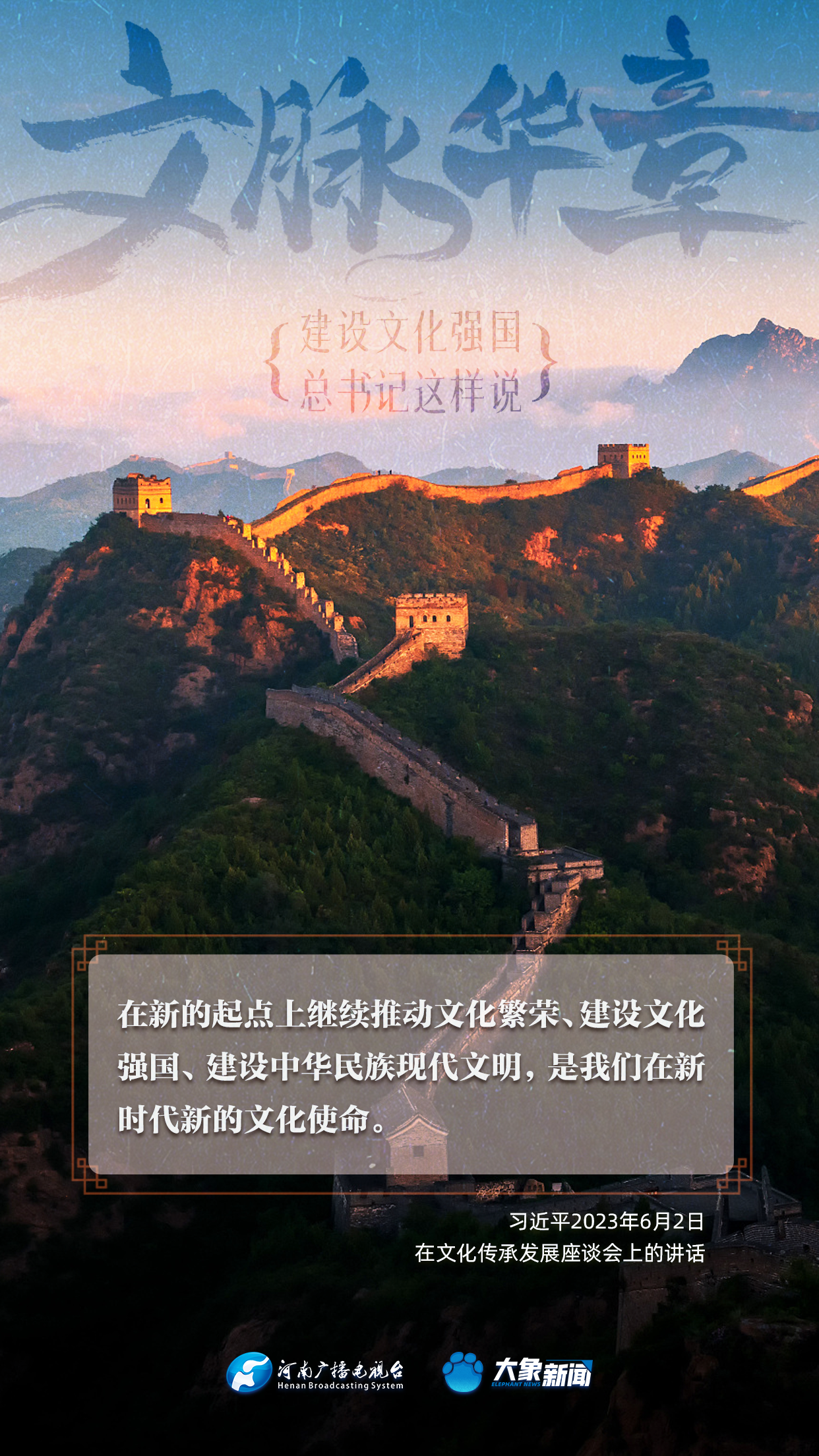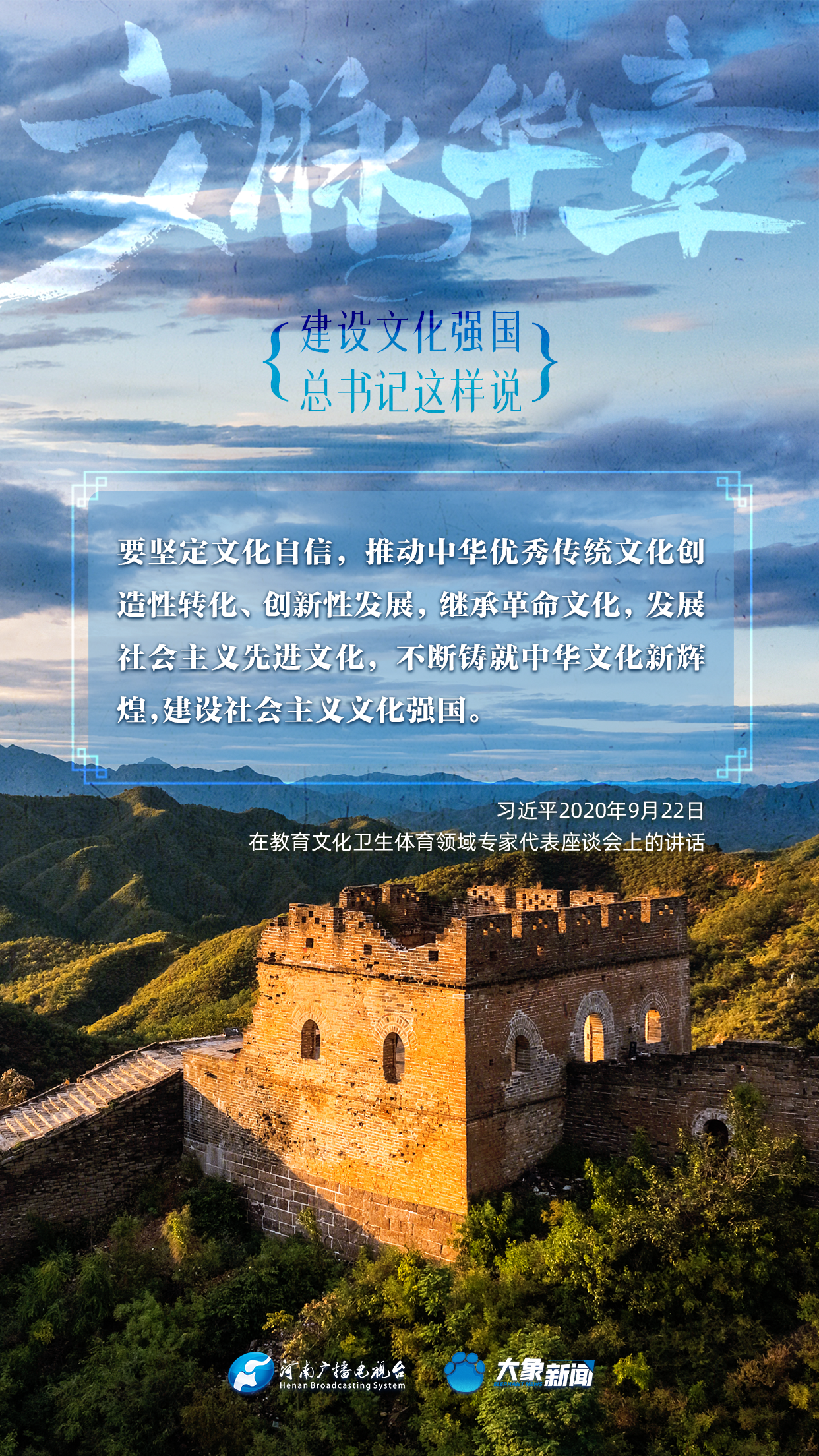 黨的十八大以來,習(xí)近平總書記站在全局和戰(zhàn)略高度,就建設(shè)社會(huì)主義文化強(qiáng)國(guó)提出一系列新思想新觀點(diǎn)新論斷,為我們堅(jiān)定文化自信,堅(jiān)持中國(guó)特色社會(huì)主義文化發(fā)展道路,提供了指引。大象新聞與您一起學(xué)習(xí)、領(lǐng)悟。