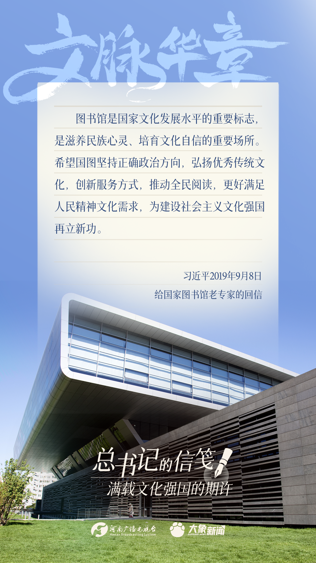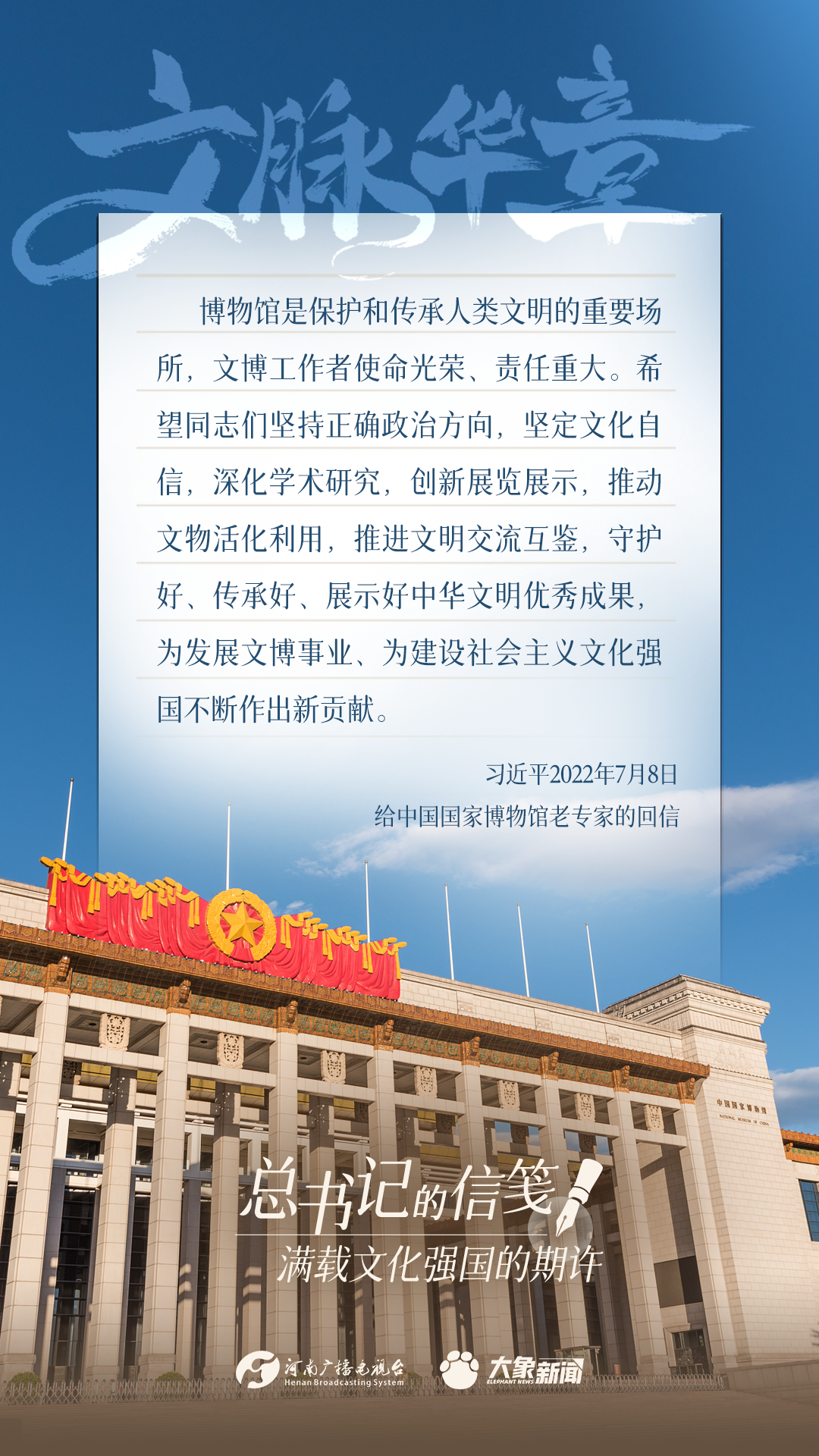 黨的十八大以來(lái),習(xí)近平總書(shū)記多次以書(shū)信的方式,同奮戰(zhàn)在建設(shè)文化強(qiáng)國(guó)一線的干部群眾、專(zhuān)家學(xué)者以及各行各業(yè)各界人士親切交流,一封封信箋,傳達(dá)關(guān)切、鼓勵(lì)與厚望。