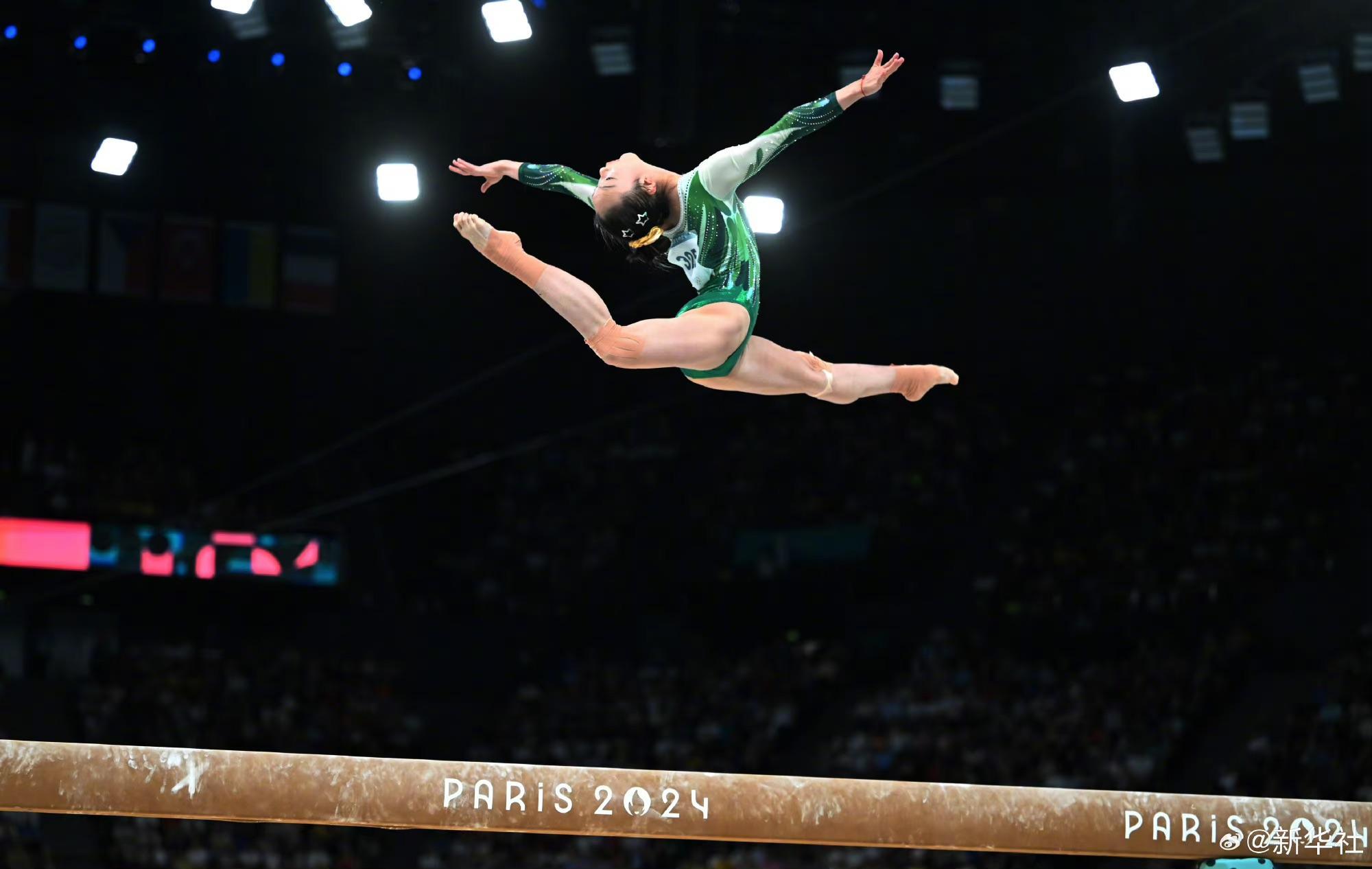 巴黎奧運會體操女子平衡木比賽中,中國選手周雅琴的靚麗身姿
