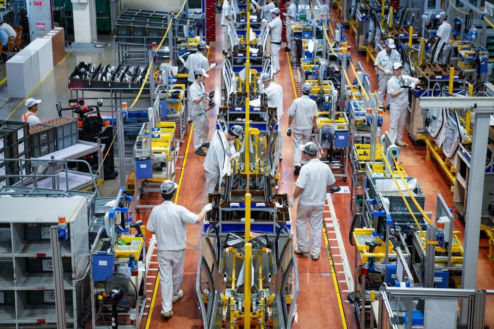 浙江湖州市長(zhǎng)興經(jīng)濟(jì)技術(shù)開(kāi)發(fā)區(qū)一家汽車(chē)部件公司,全自動(dòng)機(jī)器人高速運(yùn)轉(zhuǎn)生產(chǎn)新能源汽車(chē)配件。