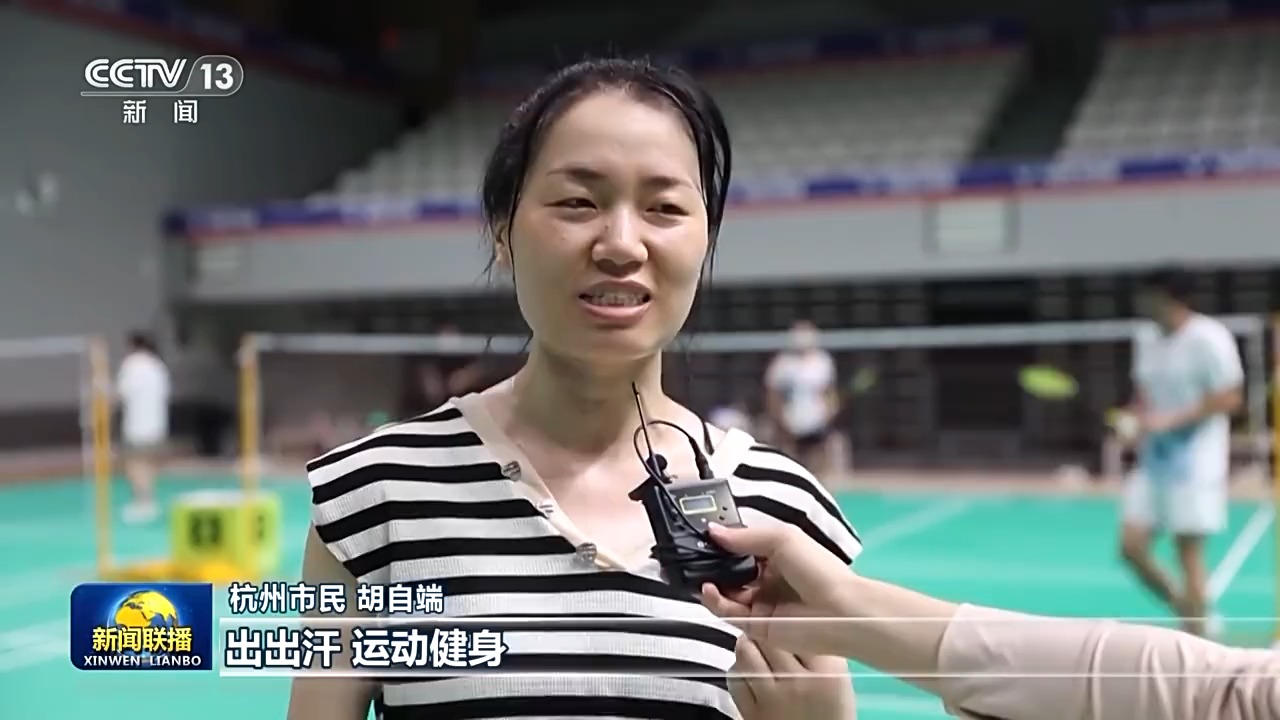 杭州市民 胡自端:出出汗,運動健身,一個也可以解壓,第二個也可以強身健體,第三個還能交到很多志同道合的好朋友,我覺得非常好。全民健身也是越來越流行的一個趨勢。