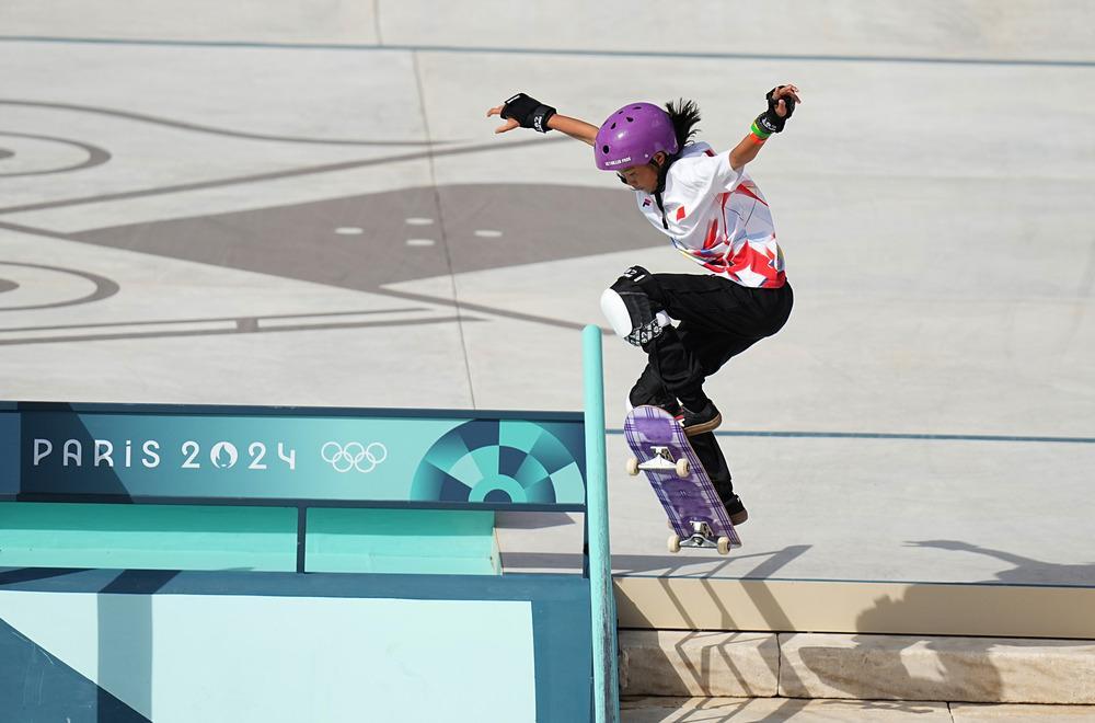 中國選手亮相巴黎奧運(yùn)會滑板比賽 圖片來源:新華社
