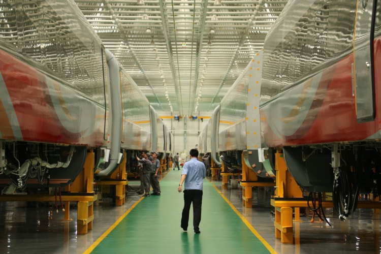 中車(chē)長(zhǎng)客動(dòng)車(chē)組裝配產(chǎn)線(xiàn)。人民網(wǎng) 任佳暉 攝