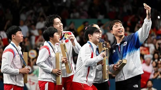 巴黎奧運(yùn)會乒乓球混合雙打頒獎(jiǎng)儀式結(jié)束后,中朝韓運(yùn)動(dòng)員聚到一起合影的場景,在朋友圈刷了屏。