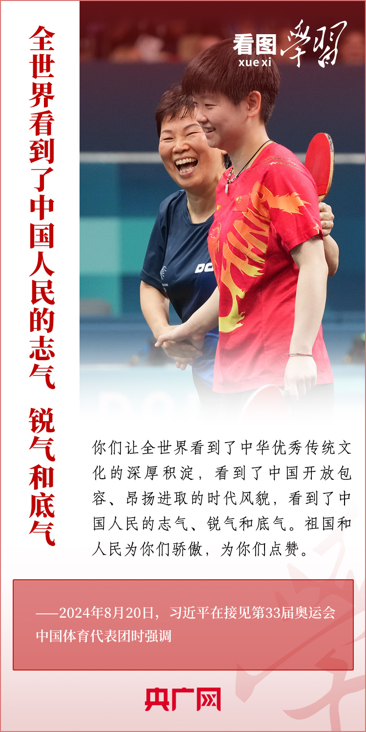 “祖國和人民為你們驕傲,為你們點贊?!?月20日,習近平總書記在人民大會堂接見第33屆奧運會中國體育代表團并發(fā)表重要講話??倳浉叨瓤隙ㄖ袊w育代表團取得的優(yōu)異成績,贊揚他們充分彰顯了新時代中國力量、生動詮釋了新時代中國精神、充分展現(xiàn)了新時代中國形象,勉勵大家戒驕戒躁、再接再厲,為建設(shè)體育強國再立新功。一起來學習!