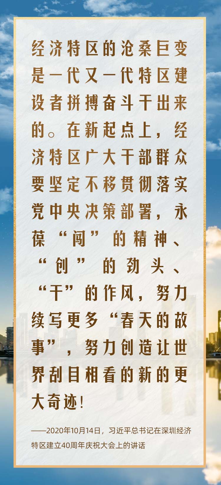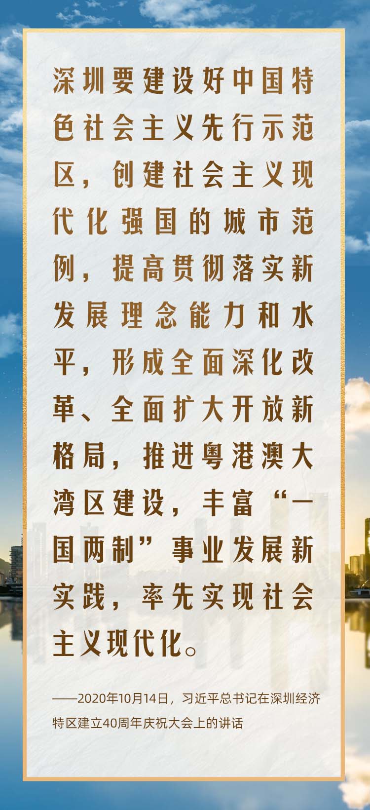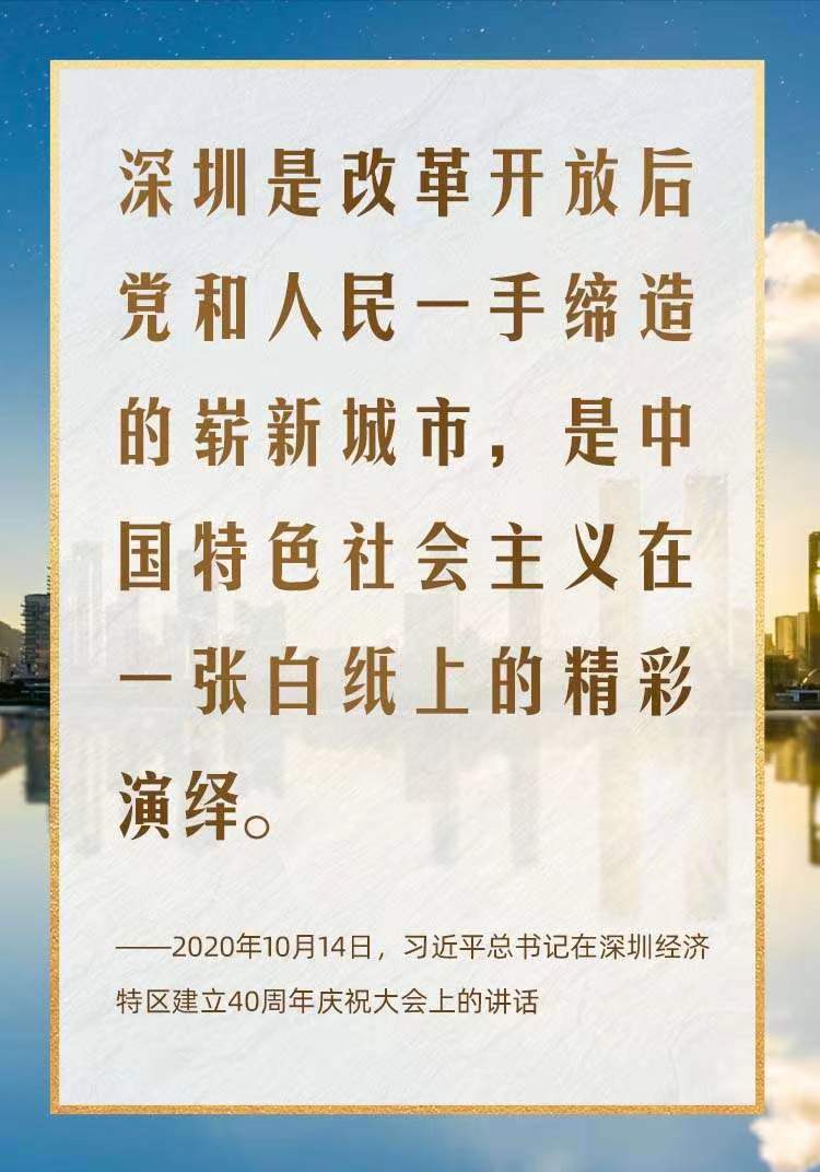 2020年10月,在慶祝深圳經(jīng)濟(jì)特區(qū)建立40周年之際,習(xí)近平總書記又一次來到這里,出席慶祝大會(huì),強(qiáng)調(diào)改革不停頓、開放不止步,在更高起點(diǎn)上推進(jìn)改革開放,推動(dòng)經(jīng)濟(jì)特區(qū)工作開創(chuàng)新局面。