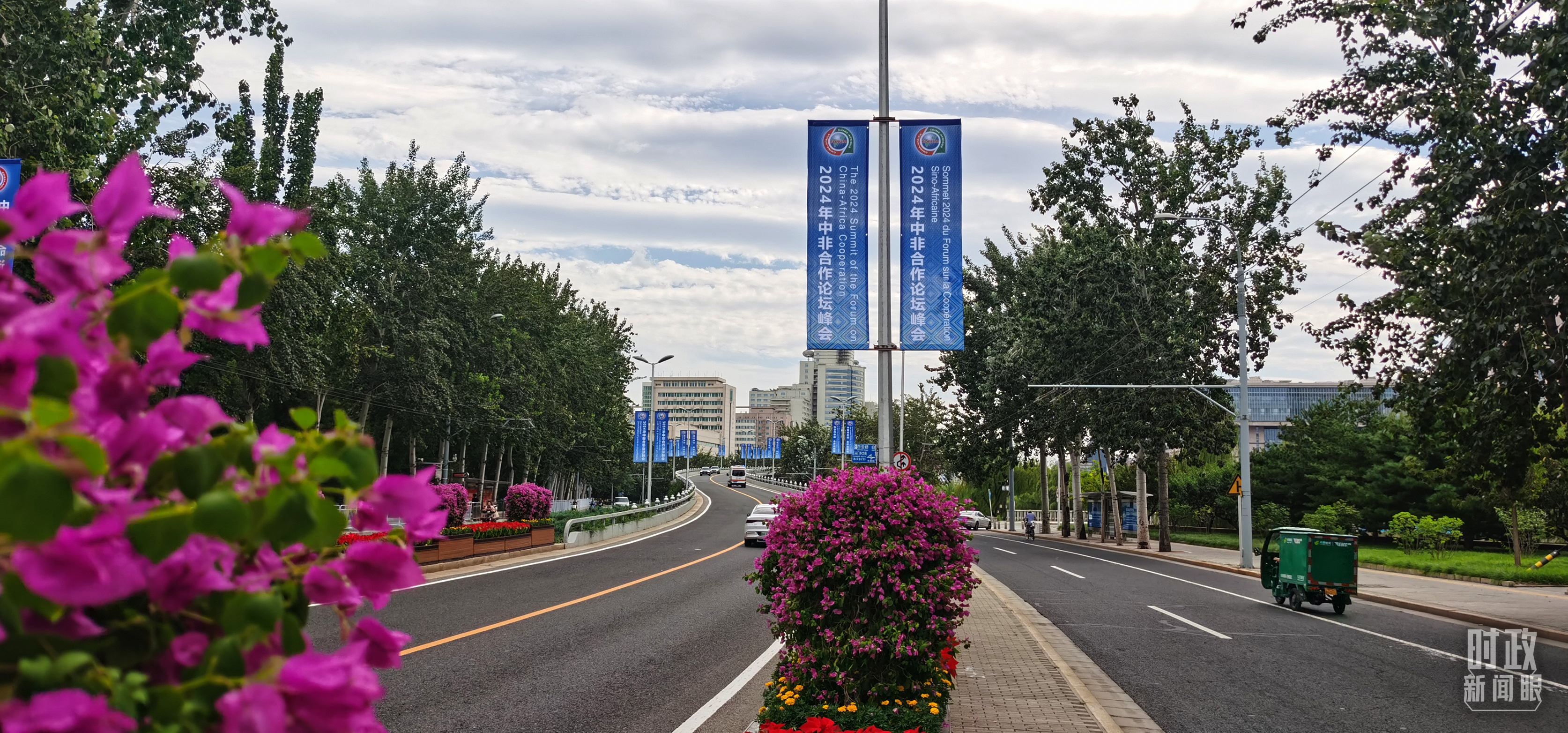 北京街頭懸掛的2024年中非合作論壇峰會(huì)旗幟。(總臺(tái)央視記者陳漢章拍攝)
