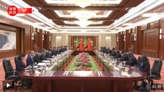 習(xí)近平指出,很高興再次同總統(tǒng)先生會面,剛才我們共同見證坦贊鐵路市場化激活合作文件簽署,意義重大。歡迎你出席中非合作論壇北京峰會。我們愿同包括贊比亞在內(nèi)的非方一道,推動這次峰會取得圓滿成功,為中贊、中非關(guān)系注入新動力。我愿同你一道,以這次峰會為契機(jī),攜手推進(jìn)各自國家現(xiàn)代化,為中贊友好關(guān)系新甲子開好頭、譜新篇。