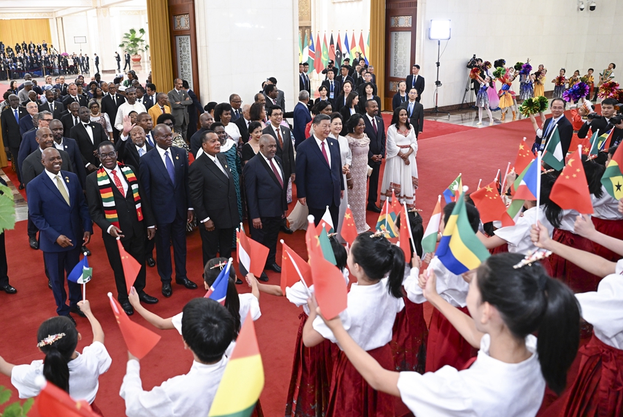 9月的北京,秋高氣爽。雄偉的人民大會堂內,中國國旗和中非合作論壇成員國國旗以及非洲聯(lián)盟旗幟交相輝映。