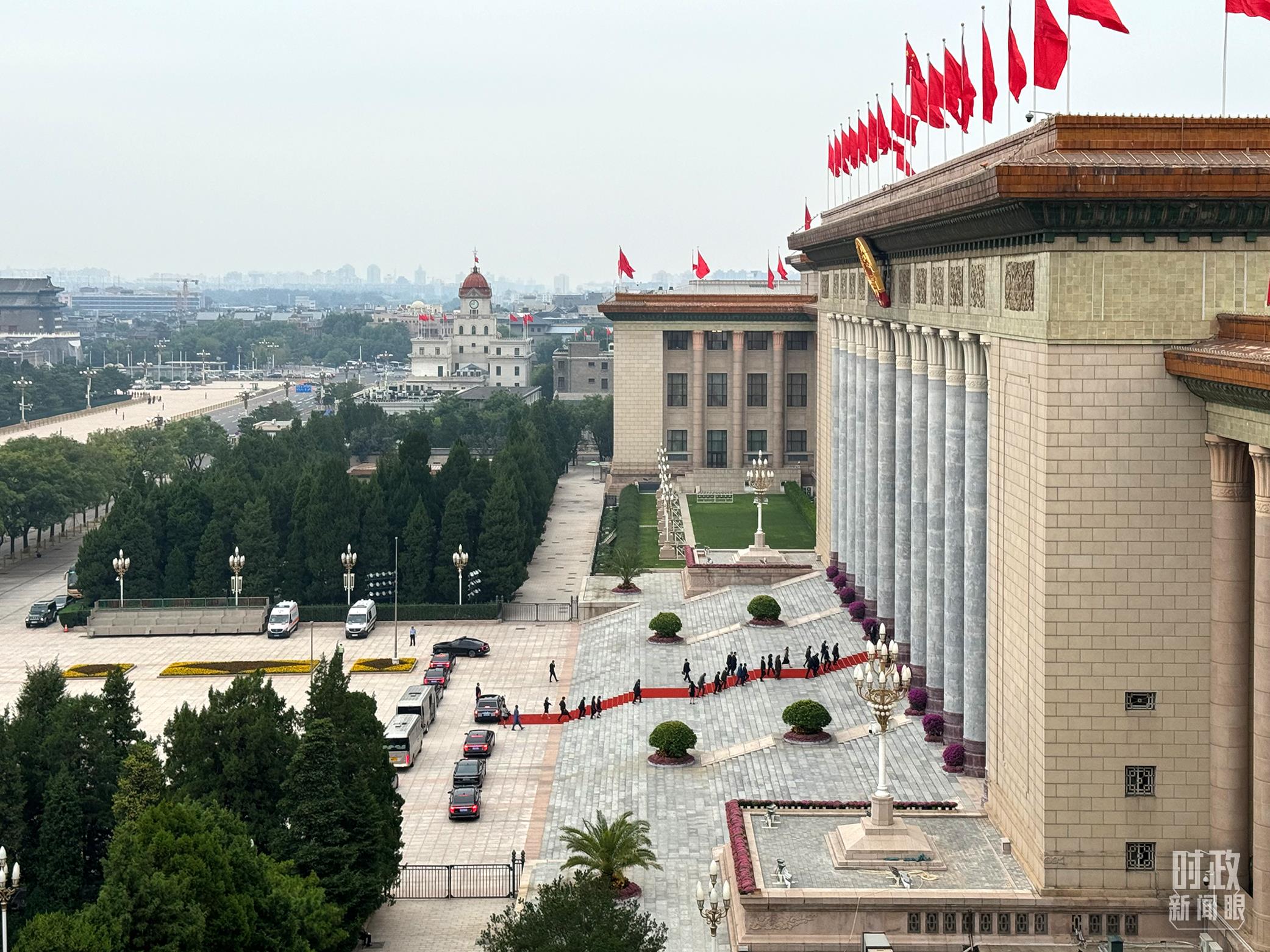 非洲國(guó)家領(lǐng)導(dǎo)人步入人民大會(huì)堂。(總臺(tái)央視記者趙怡彬拍攝)