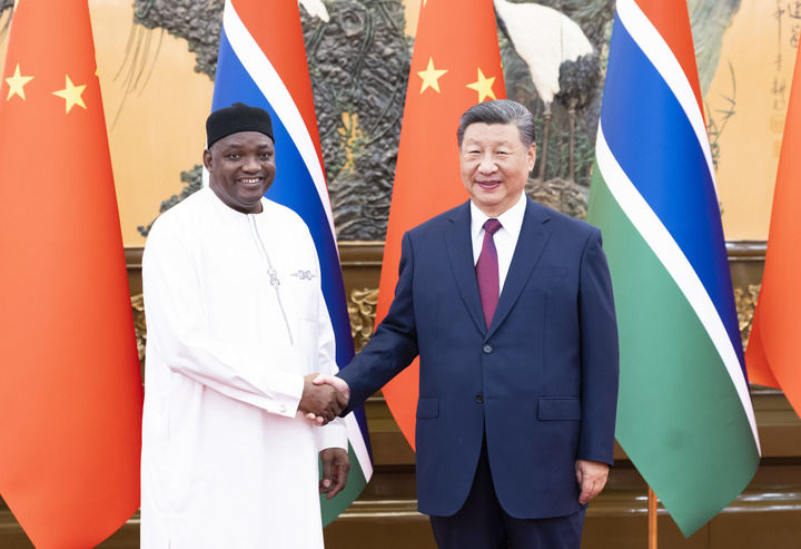習近平強調(diào),很高興中方援建和合作的項目改善了岡比亞人民的生活。此次中非合作論壇北京峰會在工業(yè)、農(nóng)業(yè)、基礎設施建設等領域推出了一系列合作新舉措。中方愿同岡方一道,以落實此次峰會成果為契機,推動中岡合作取得更多成果,助力岡比亞經(jīng)濟增長、民生改善。中方將繼續(xù)向岡方派遣醫(yī)療隊,支持岡比亞中文教育發(fā)展,鼓勵更多岡比亞青年來華交流,增進民心相通。祝賀岡比亞成功舉辦伊斯蘭合作組織第十五屆首腦會議,中方愿同岡比亞和伊斯蘭合作組織深化合作。
