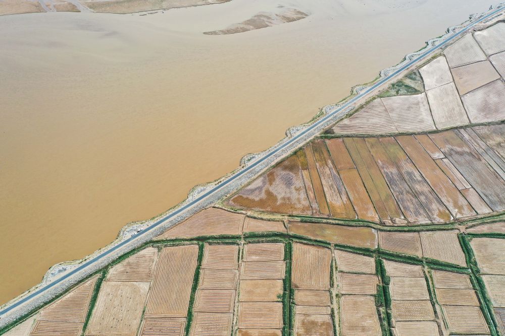 2024年5月26日在內(nèi)蒙古巴彥淖爾市臨河區(qū)拍攝的黃河(無(wú)人機(jī)照片)。巴彥淖爾市位于黃河“幾字彎”北端,擁有富饒的河套灌區(qū),引黃灌溉面積達(dá)1000多萬(wàn)畝。近年來(lái),在引黃灌溉工程支撐下,河套灌區(qū)年均糧食總產(chǎn)量達(dá)60億斤以上。