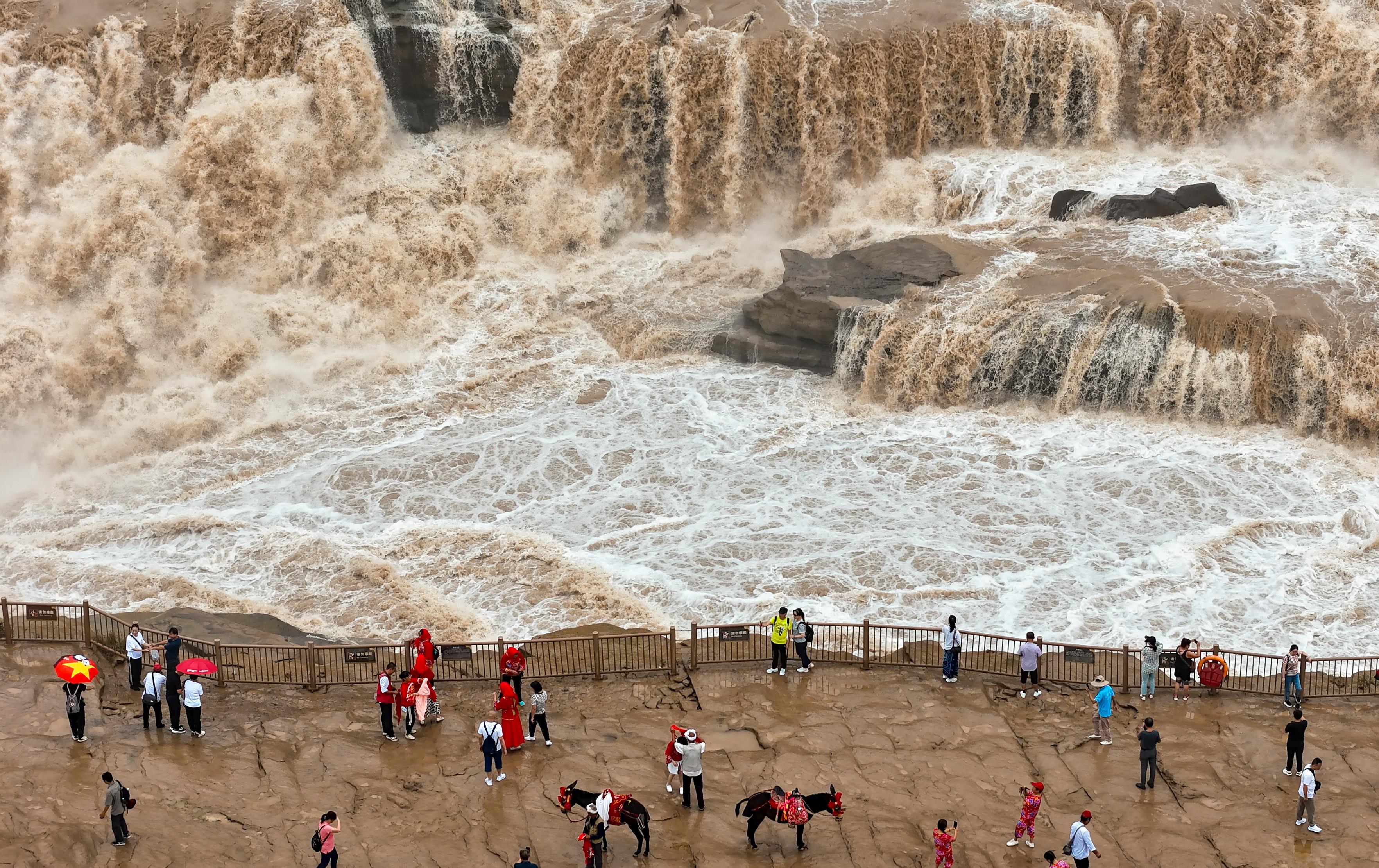 9月9日,游客在黃河壺口瀑布景區(qū)游覽。