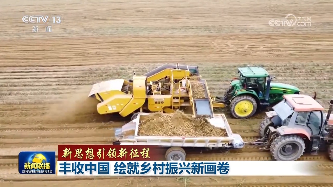 金秋時節(jié),廣袤田野上稻浪滾滾、五谷豐登。在東北平原,黑龍江北大荒集團(tuán)鶴山農(nóng)場的33萬畝大豆迎來收獲,53臺大馬力收割機(jī),正抓住晴好天氣晝夜搶收。在黃淮海地區(qū),玉米收獲陸續(xù)開啟。在西南地區(qū),水稻收獲進(jìn)入尾聲。內(nèi)蒙古鄂爾多斯的馬鈴薯收獲進(jìn)入高峰,新投入的聯(lián)合收獲機(jī)讓馬鈴薯實(shí)現(xiàn)了全程機(jī)械化采收。這一幅幅絢爛的豐收畫卷凝聚著億萬農(nóng)民的耕耘與奮斗。