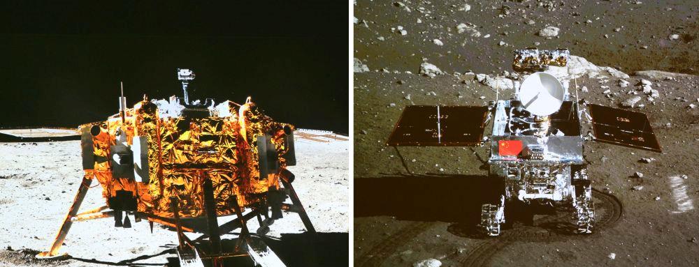 2013年12月15日晚,正在月球上開(kāi)展科學(xué)探測(cè)工作的嫦娥三號(hào)著陸器和巡視器進(jìn)行互成像實(shí)驗(yàn),“兩器”順利互拍,嫦娥三號(hào)任務(wù)取得圓滿成功。