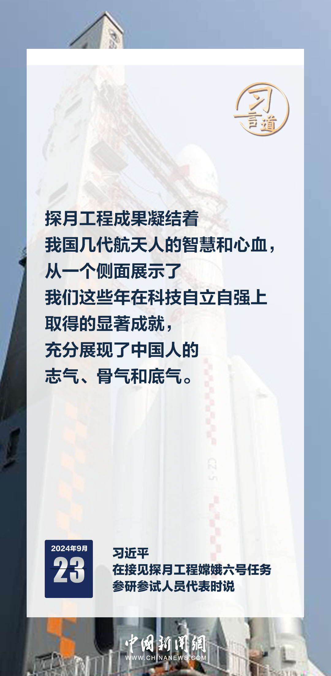 中共中央總書記、國家主席、中央軍委主席習近平23日在人民大會堂接見探月工程嫦娥六號任務參研參試人員代表時發(fā)表重要講話。習近平指出——