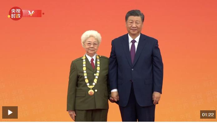 中華人民共和國(guó)國(guó)家勛章和國(guó)家榮譽(yù)稱號(hào)頒授儀式9月29日上午10時(shí)在人民大會(huì)堂隆重舉行。中共中央總書記、國(guó)家主席、中央軍委主席習(xí)近平向“人民藝術(shù)家”國(guó)家榮譽(yù)稱號(hào)獲得者田華頒授獎(jiǎng)?wù)隆?/p>