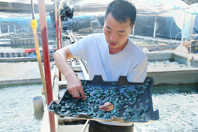 走進福建東山縣陳城鎮(zhèn)澳角村鮑魚養(yǎng)殖戶郭漢棟的養(yǎng)殖場,新苗池與成品鮑魚苗池在兩側(cè)排開,養(yǎng)殖池智慧控制系統(tǒng)正在高效運轉(zhuǎn)。這些年,郭漢棟的鮑魚苗賣到了閩北、浙江等地,育苗收入穩(wěn)步增長。