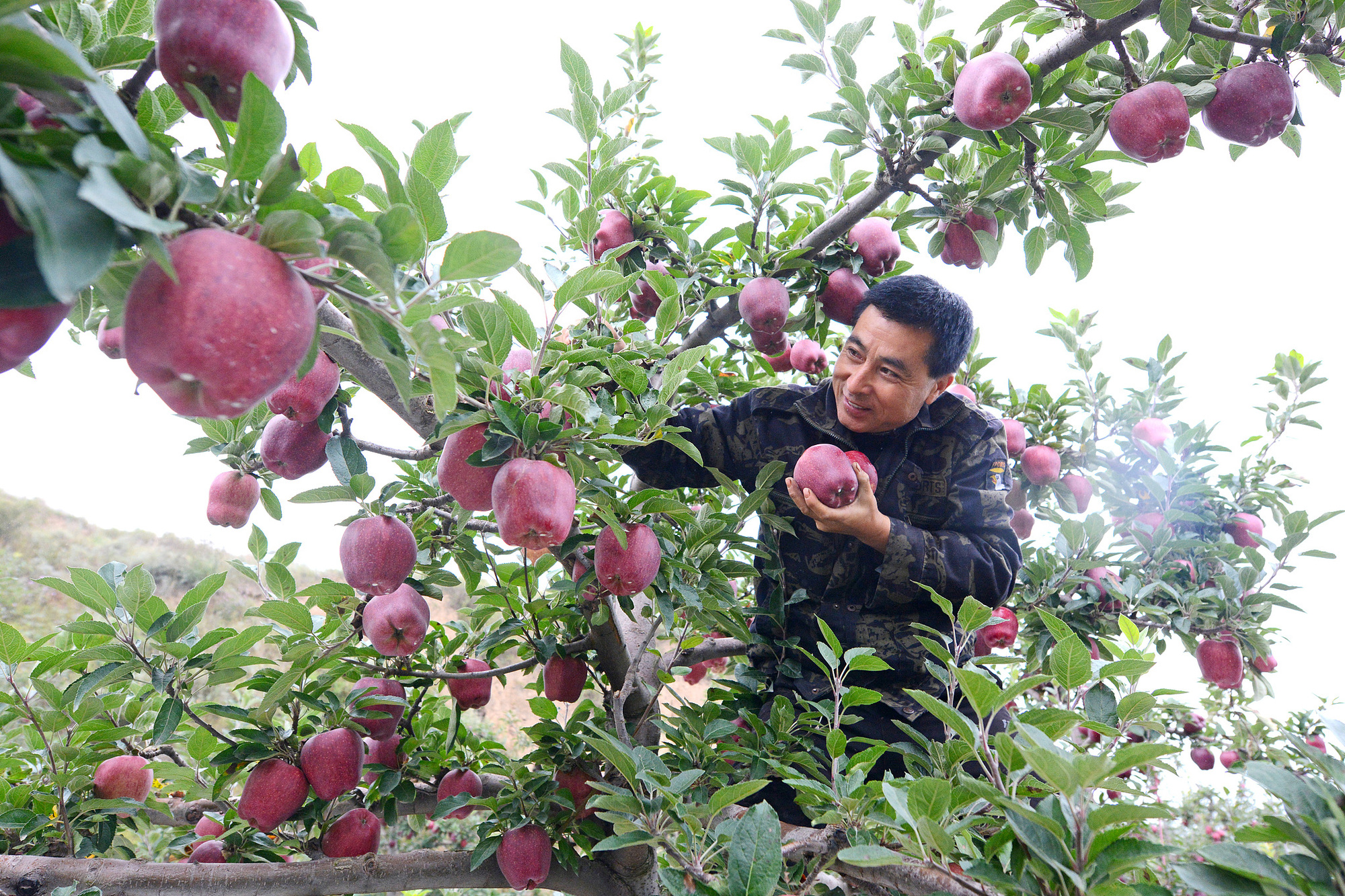?。ür(nóng)在采摘花牛蘋果)