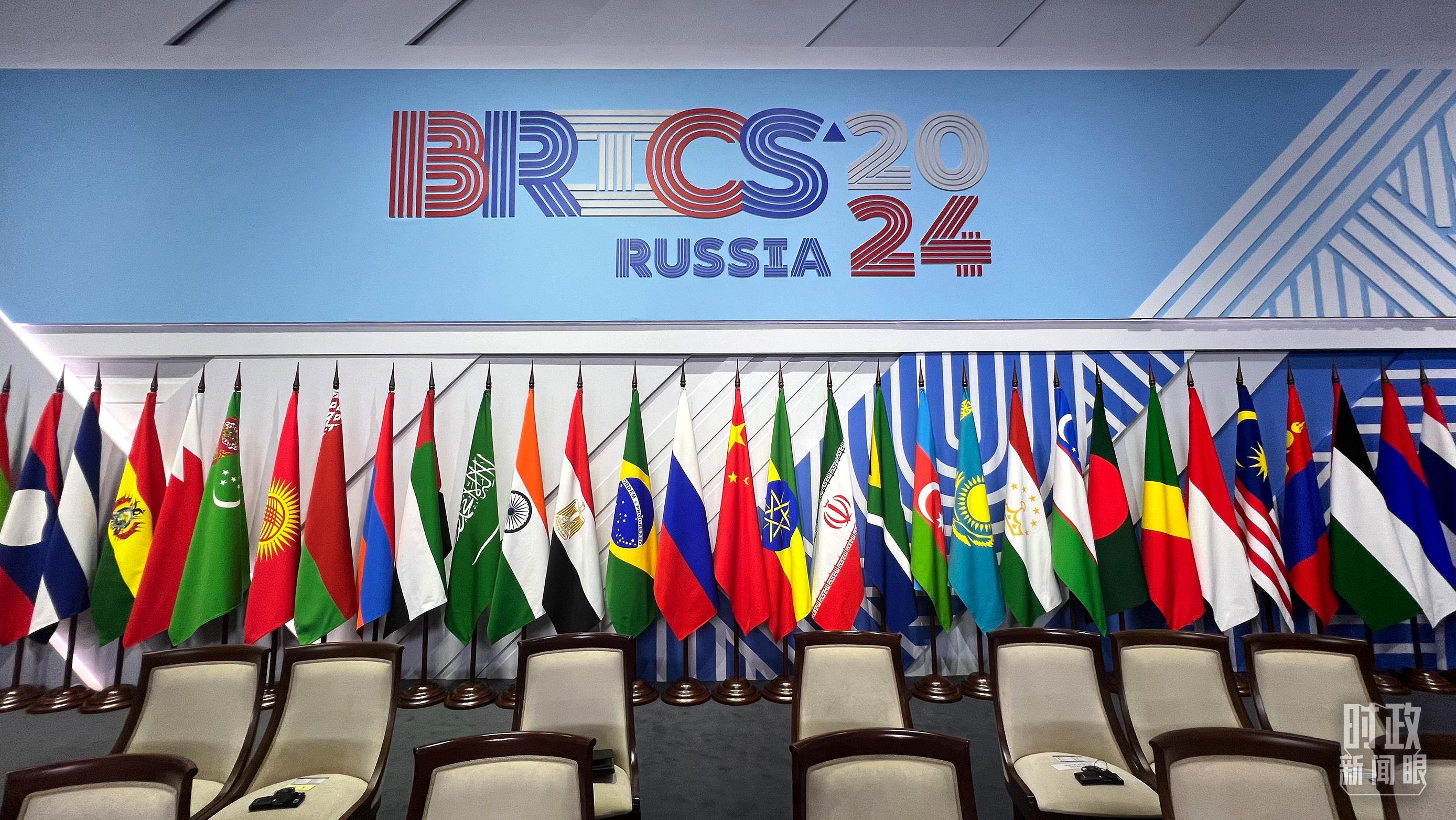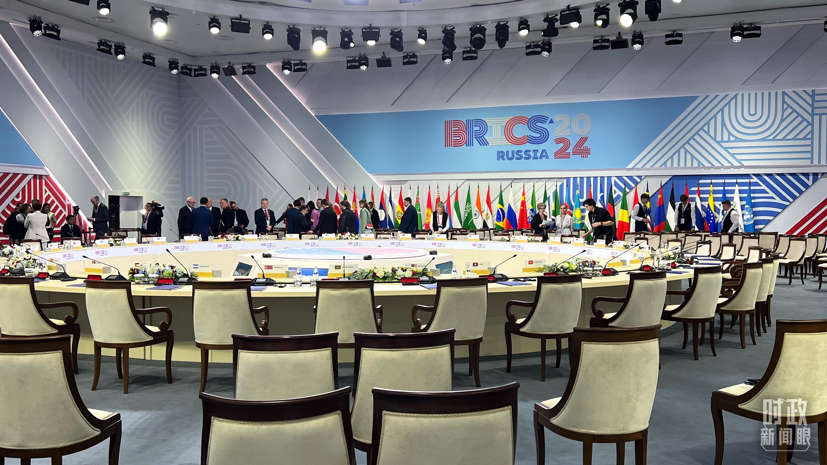 △今年“金磚+”領(lǐng)導人對話會在喀山會展中心舉行,這是對話會開始前的現(xiàn)場。(總臺央視記者程鋮拍攝)