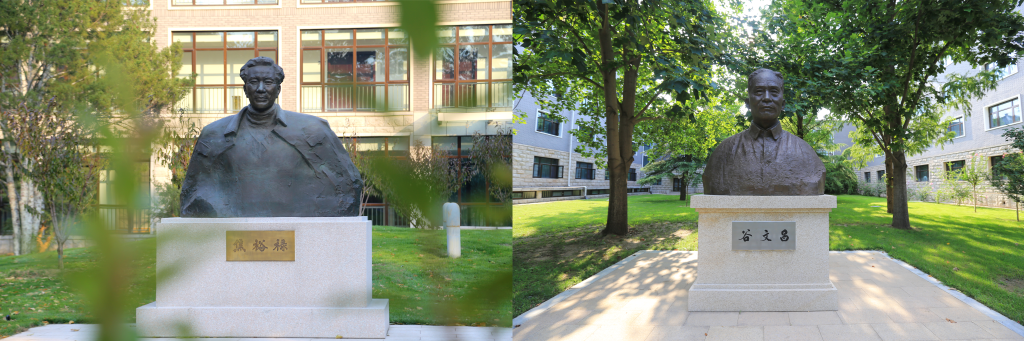 左圖為中央黨校(國(guó)家行政學(xué)院)校園內(nèi)的焦裕祿雕塑,右圖為校園內(nèi)的谷文昌雕塑。