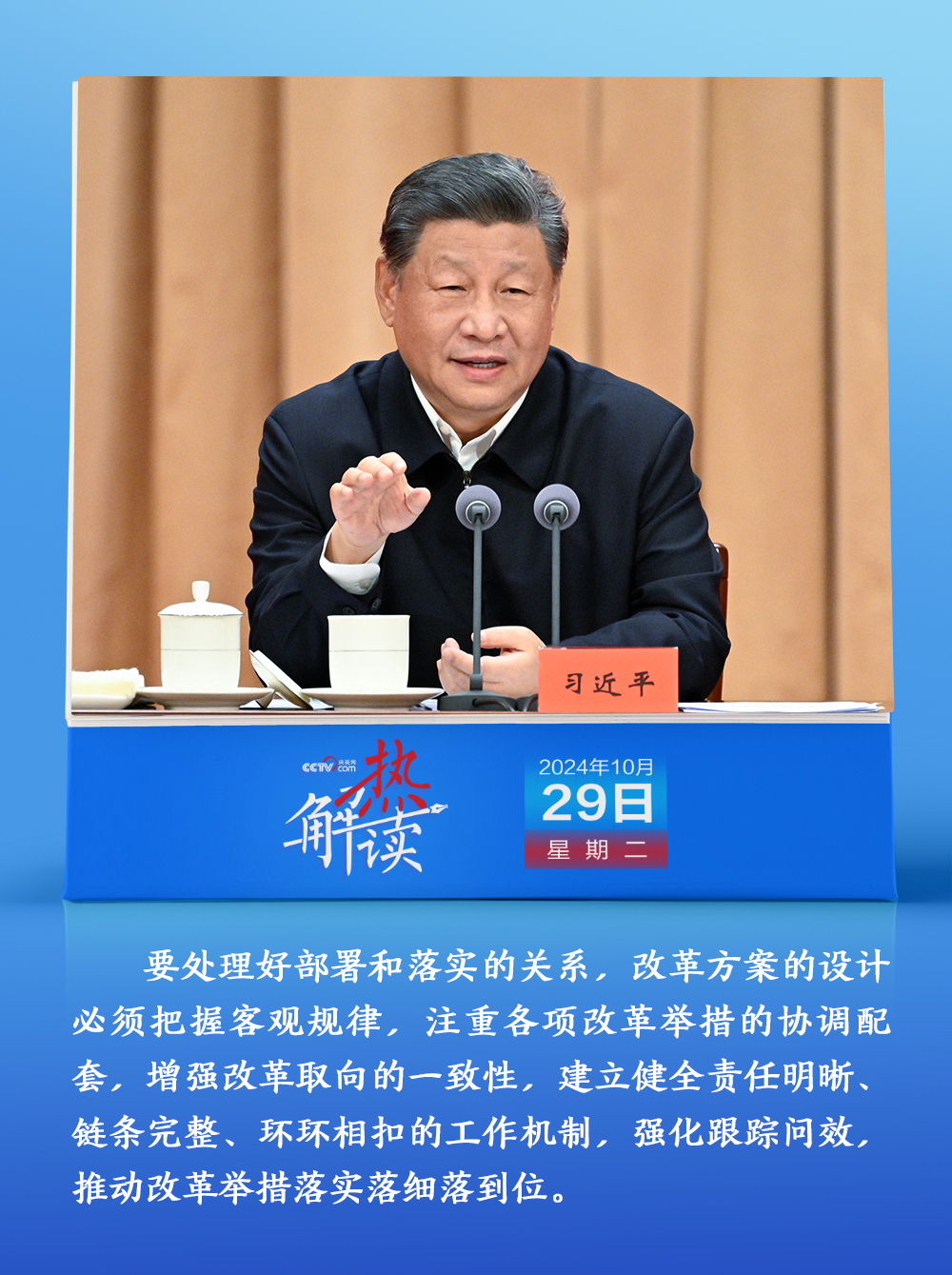 熱解讀10月29日,省部級(jí)主要領(lǐng)導(dǎo)干部學(xué)習(xí)貫徹黨的二十屆三中全會(huì)精神專題研討班開(kāi)班。在開(kāi)班式上,習(xí)近平總書記明確提出要“處理好部署和落實(shí)的關(guān)系”,“建立健全責(zé)任明晰、鏈條完整、環(huán)環(huán)相扣的工作機(jī)制,強(qiáng)化跟蹤問(wèn)效,推動(dòng)改革舉措落實(shí)落細(xì)落到位”。