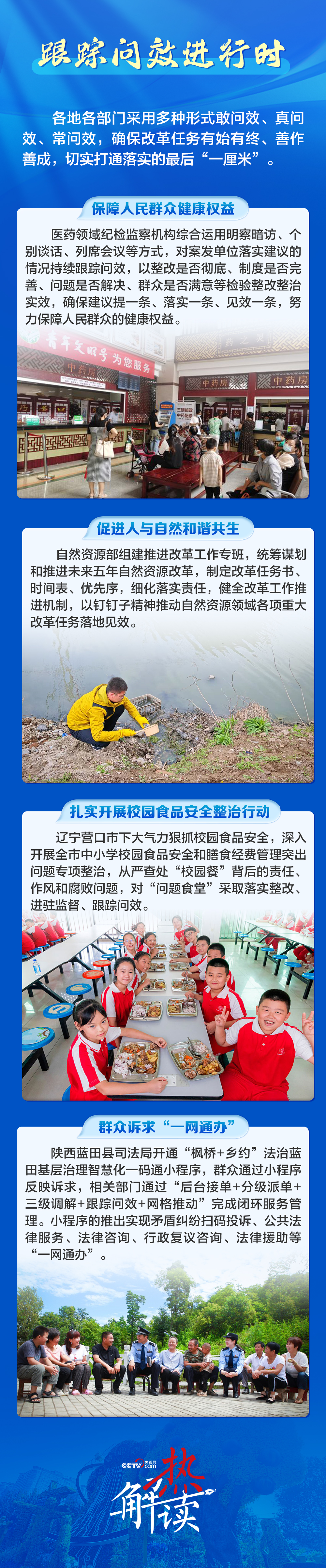 今年7月,在黨的二十屆三中全會(huì)第二次全體會(huì)議上,習(xí)近平總書記進(jìn)一步提出,要強(qiáng)化跟蹤問(wèn)效,深入查找存在的問(wèn)題和原因,及時(shí)推動(dòng)整改。