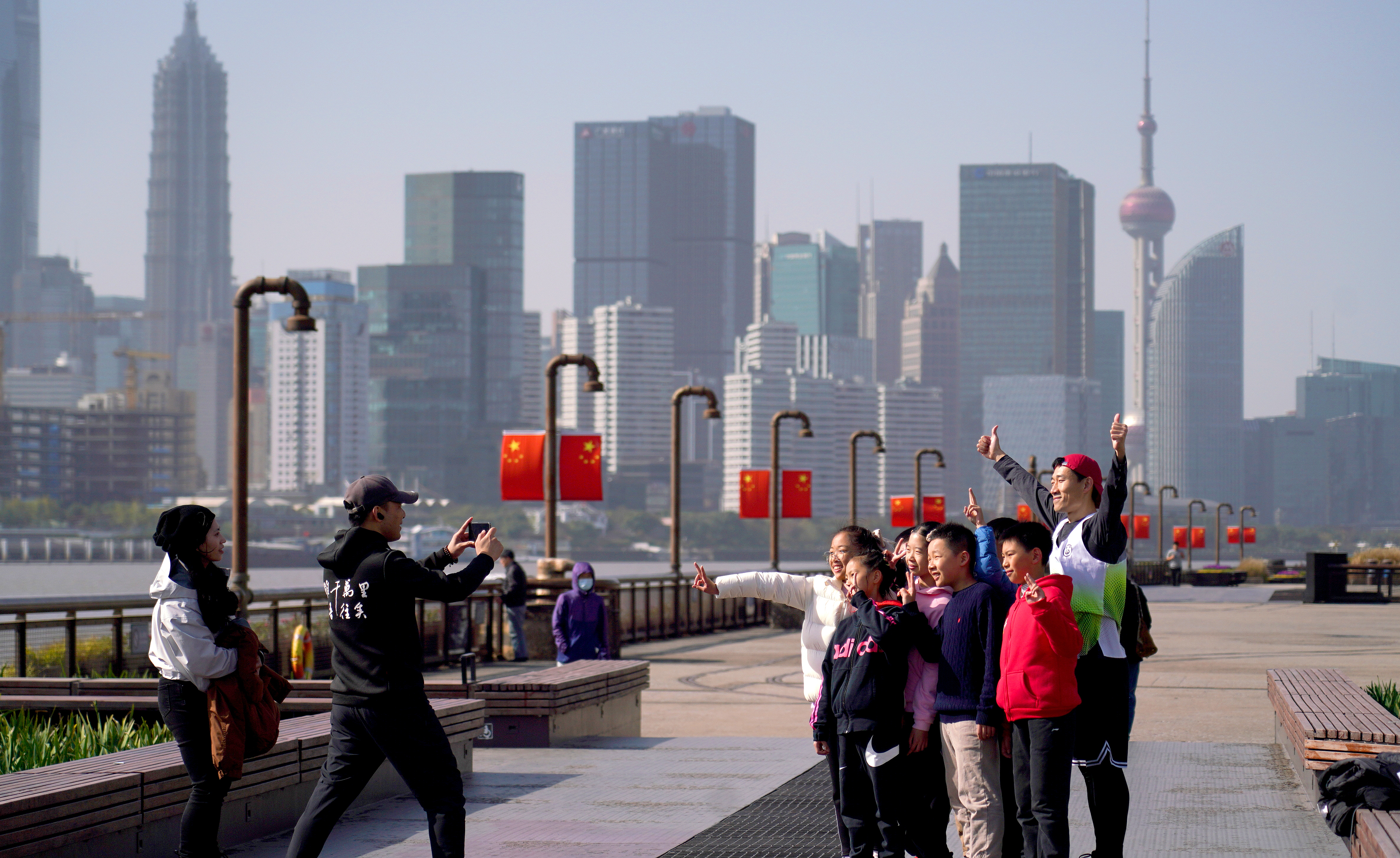 △ 2023年11月17日,市民游客在上海楊浦濱江岸線(xiàn)觀光拍照。