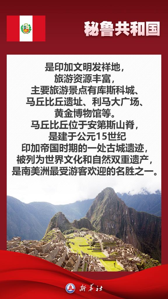 應秘魯共和國總統(tǒng)博魯阿爾特邀請,國家主席習近平將于11月13日至17日赴利馬出席亞太經(jīng)合組織第三十一次領導人非正式會議并對秘魯進行國事訪問。秘魯位于南美洲西部,是印加文明發(fā)祥地,也是最早同新中國建交的拉美國家之一。關于秘魯,七張海報帶你了解更多——