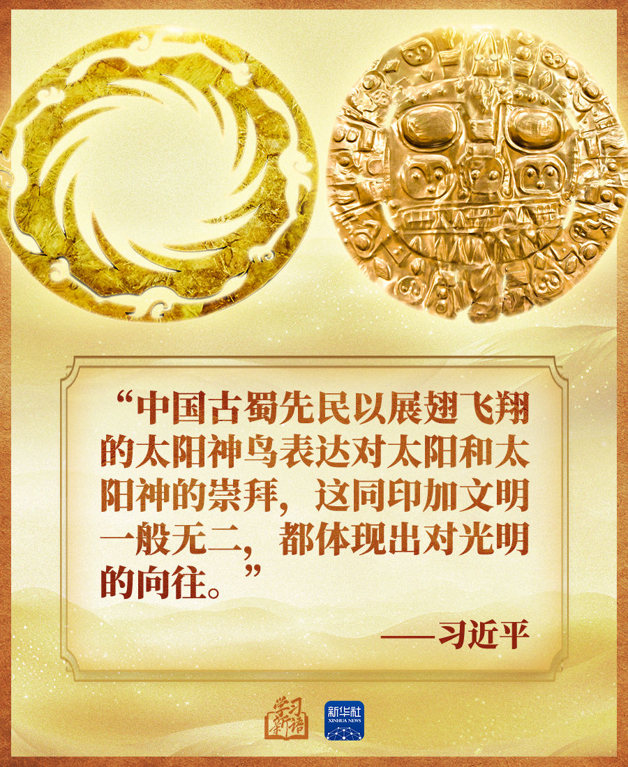 “中外考古學界認為,中華文明和美洲文明實際上是同一祖先的后代在不同時代、不同地點的產物。文明的智慧讓我們理念相近、心靈相通?!?/p>