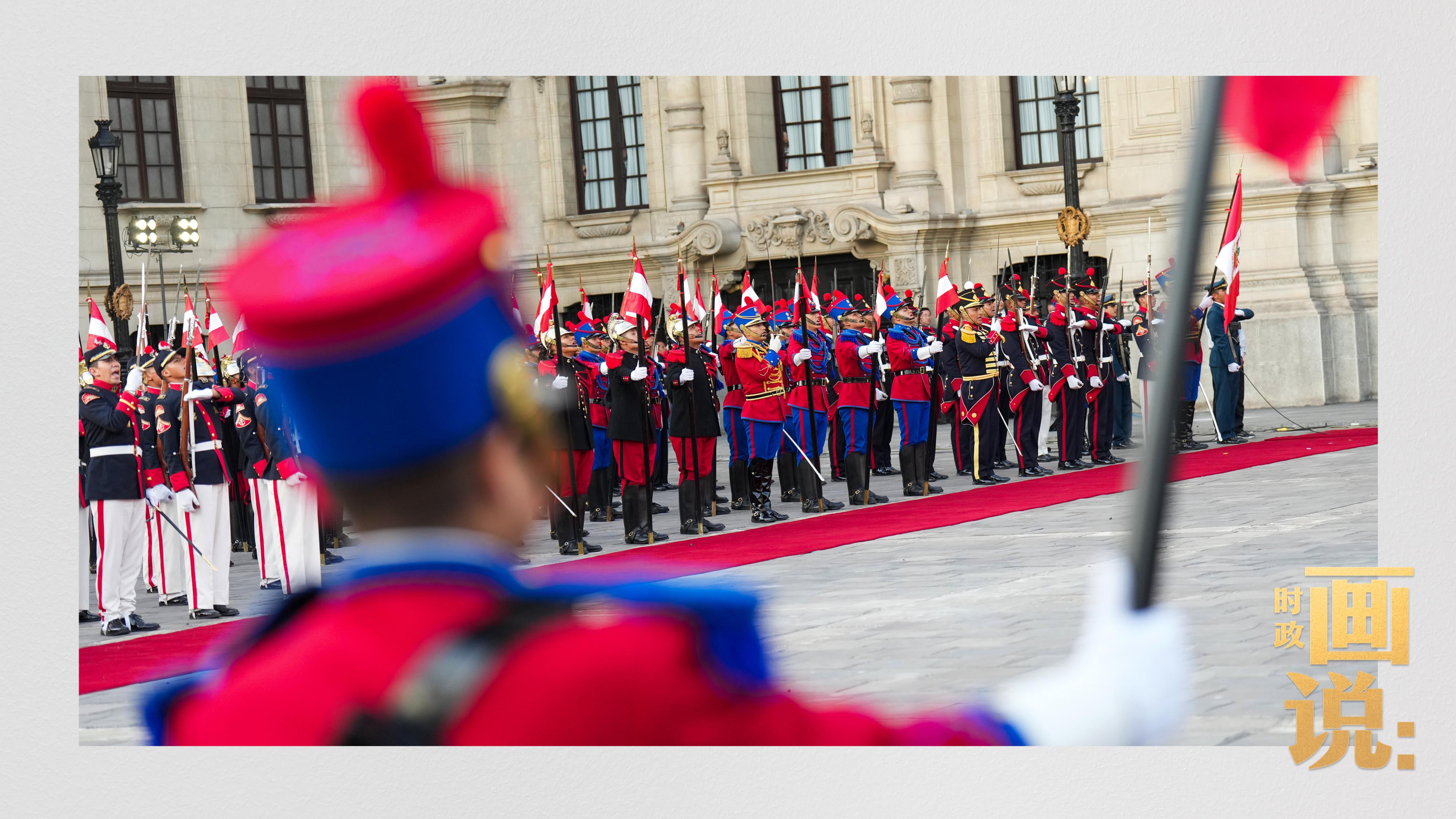當(dāng)?shù)貢r(shí)間11月14日,國(guó)家主席習(xí)近平乘專(zhuān)機(jī)抵達(dá)秘魯首都利馬,出席亞太經(jīng)合組織第三十一次領(lǐng)導(dǎo)人非正式會(huì)議并對(duì)秘魯進(jìn)行國(guó)事訪問(wèn)。當(dāng)天下午,習(xí)近平出席博魯阿爾特在總統(tǒng)府前廣場(chǎng)舉行的歡迎儀式。