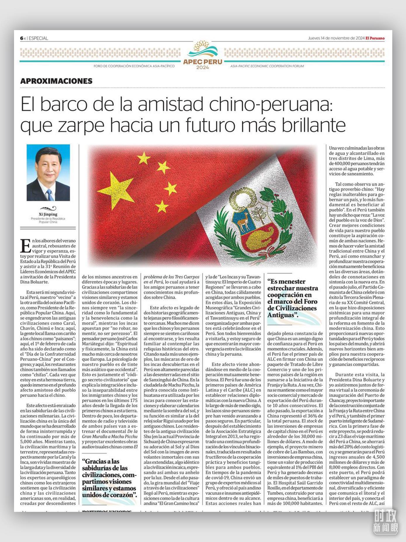 △習(xí)主席在《秘魯人報》發(fā)表題為《讓中秘友好之船揚(yáng)帆遠(yuǎn)航》的署名文章。(總臺國廣記者吳倩)