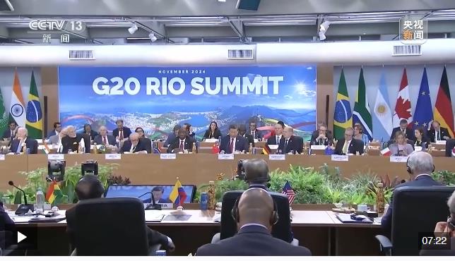 當(dāng)天,G20領(lǐng)導(dǎo)人第十九次峰會在里約熱內(nèi)盧現(xiàn)代藝術(shù)博物館開幕。峰會主題是“構(gòu)建公正的世界和可持續(xù)的星球”,重點(diǎn)聚焦全球不平等、抗擊饑餓與貧困、可持續(xù)發(fā)展和全球治理改革等議題。