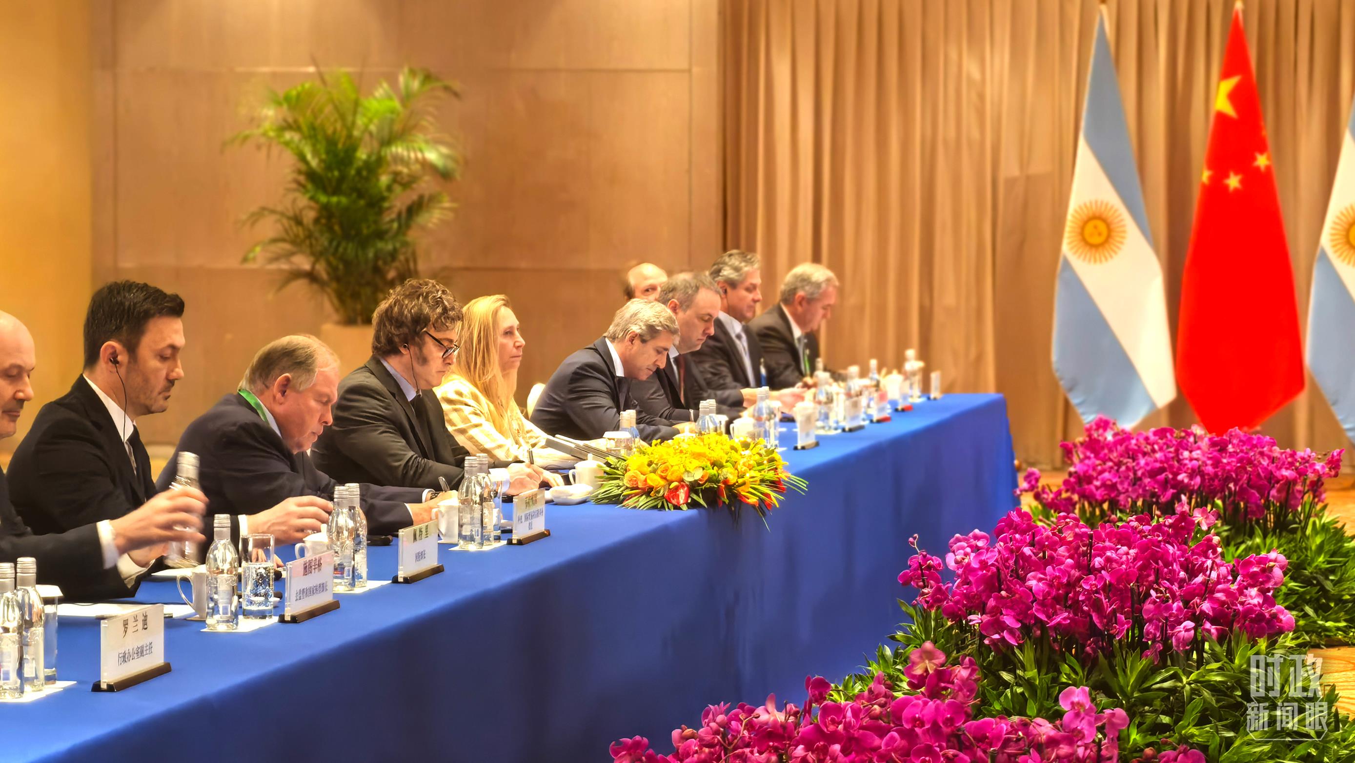習主席會見阿根廷總統(tǒng)米萊現(xiàn)場。(總臺央廣記者潘毅拍攝)