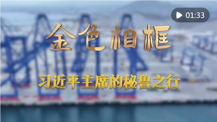 結(jié)束會談,習(xí)近平主席同博魯阿爾特總統(tǒng)并肩走來。兩位元首面前,矗立著巨型屏幕。“從錢凱到上海:共享發(fā)展 共建繁榮”,兩國元首以視頻方式共同出席秘魯錢凱港開港儀式。