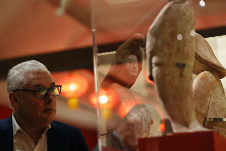 2024年11月18日,在位于法國巴黎的吉美國立亞洲藝術(shù)博物館,一名觀眾參觀“中國·唐——一個多元開放的朝代(7至10世紀)”展覽。新華社記者 高靜 攝