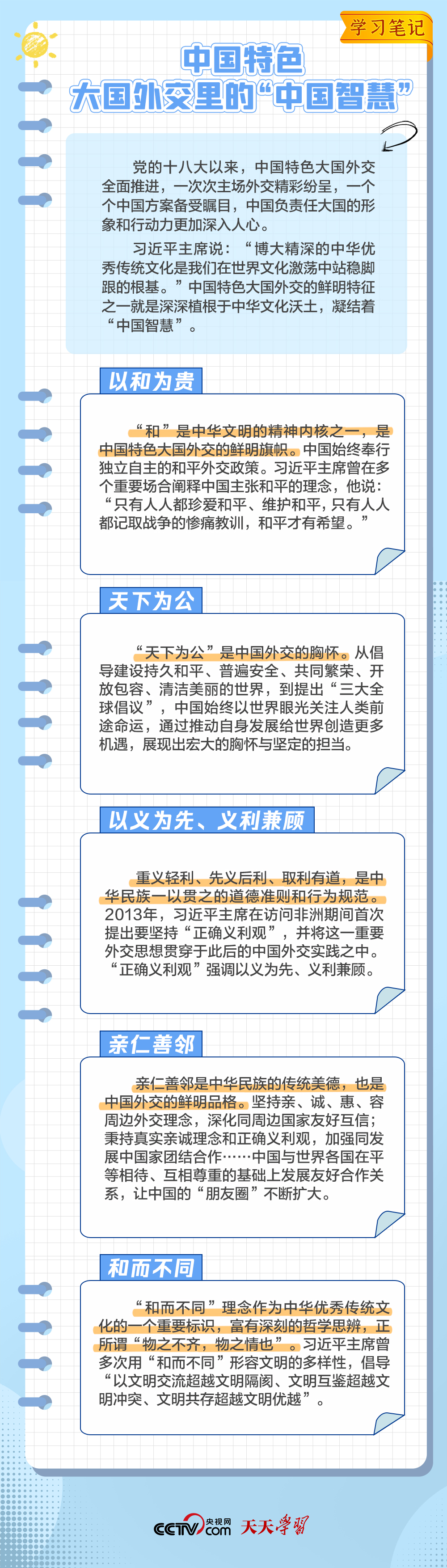 10年來,面對風(fēng)云變幻的國際形勢,中國特色大國外交扎實推進,形成了全方位、多層次、立體化的外交布局,為我國高質(zhì)量發(fā)展?fàn)I造了良好外部環(huán)境。中國特色大國外交提出10周年之際,《學(xué)習(xí)筆記》特梳理其內(nèi)涵要義,與您一同感悟其中蘊含的“中國智慧”。