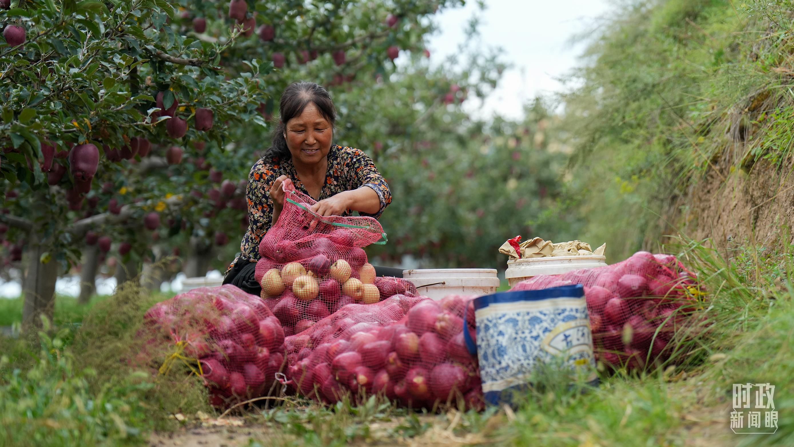 甘肅天水的花牛蘋果已經(jīng)成為當?shù)厝罕姷摹吧鷳B(tài)果”“致富果”。(總臺記者李晉拍攝)