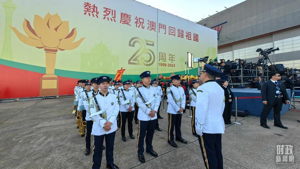 △澳門警察樂隊靜候習(xí)主席到來。(總臺央視記者段德文拍攝)