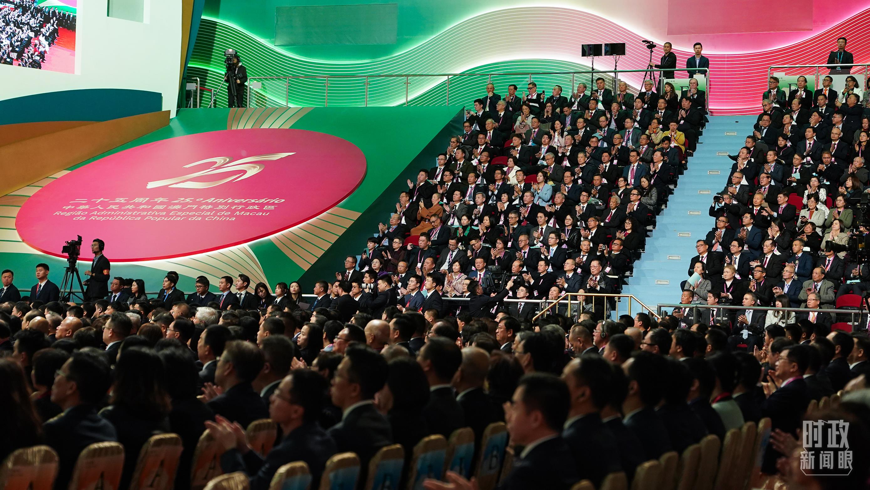 12月20日上午,澳門東亞運動會體育館內,慶祝澳門回歸祖國25周年大會暨澳門特別行政區(qū)第六屆政府就職典禮隆重舉行。