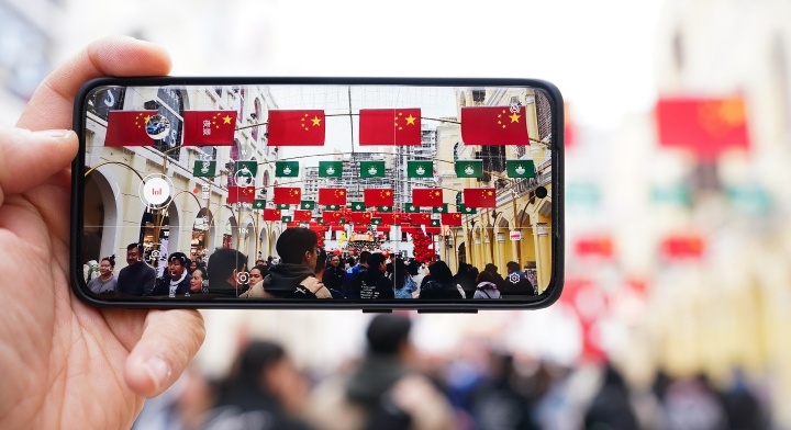 喜迎回歸祖國25周年,澳門街頭懸掛國旗區(qū)旗