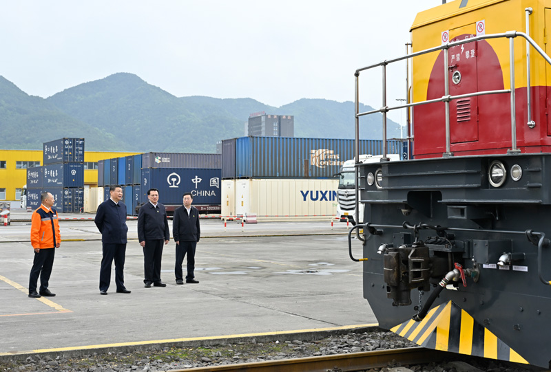 2024年4月22日,習近平總書記在重慶國際物流樞紐園區(qū)重慶鐵路集裝箱中心站考察。