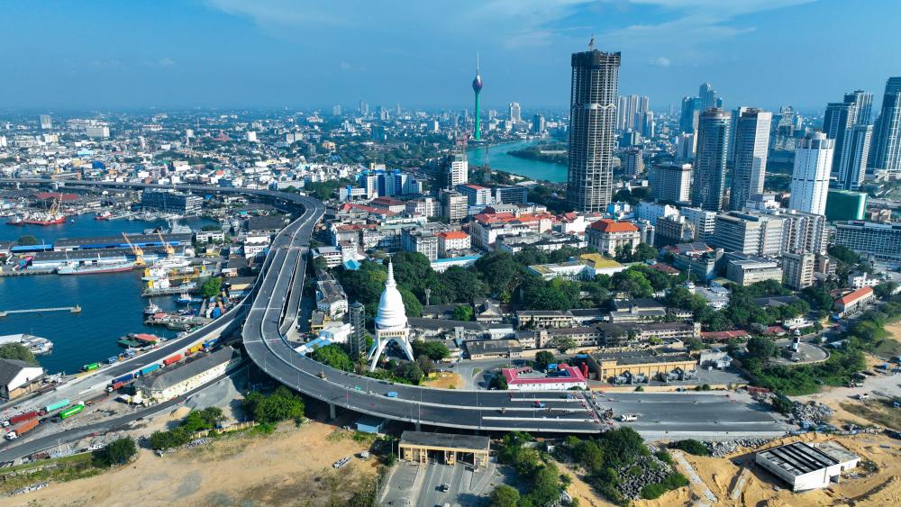這是2025年1月13日拍攝的斯里蘭卡科倫坡風光(無人機照片)。新華社發(fā)