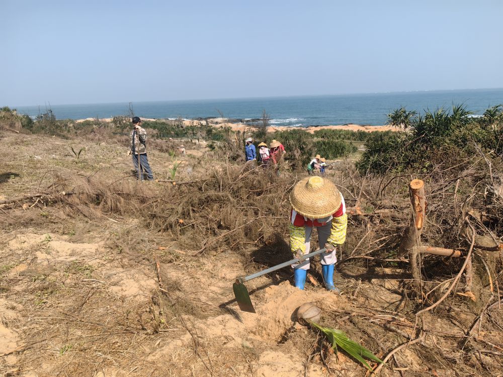 “和原來(lái)的木麻黃樹(shù)相比,椰子樹(shù)不僅抗風(fēng)能力更強(qiáng),也更加美觀?!惫と隧n吉衍嫻熟地將一鍬紅土鏟到剛種下的椰苗根部,并輕輕拍打夯實(shí),“這一片椰林要種280畝,我們每天干八九個(gè)小時(shí),這幾天就要種完?!?/p>