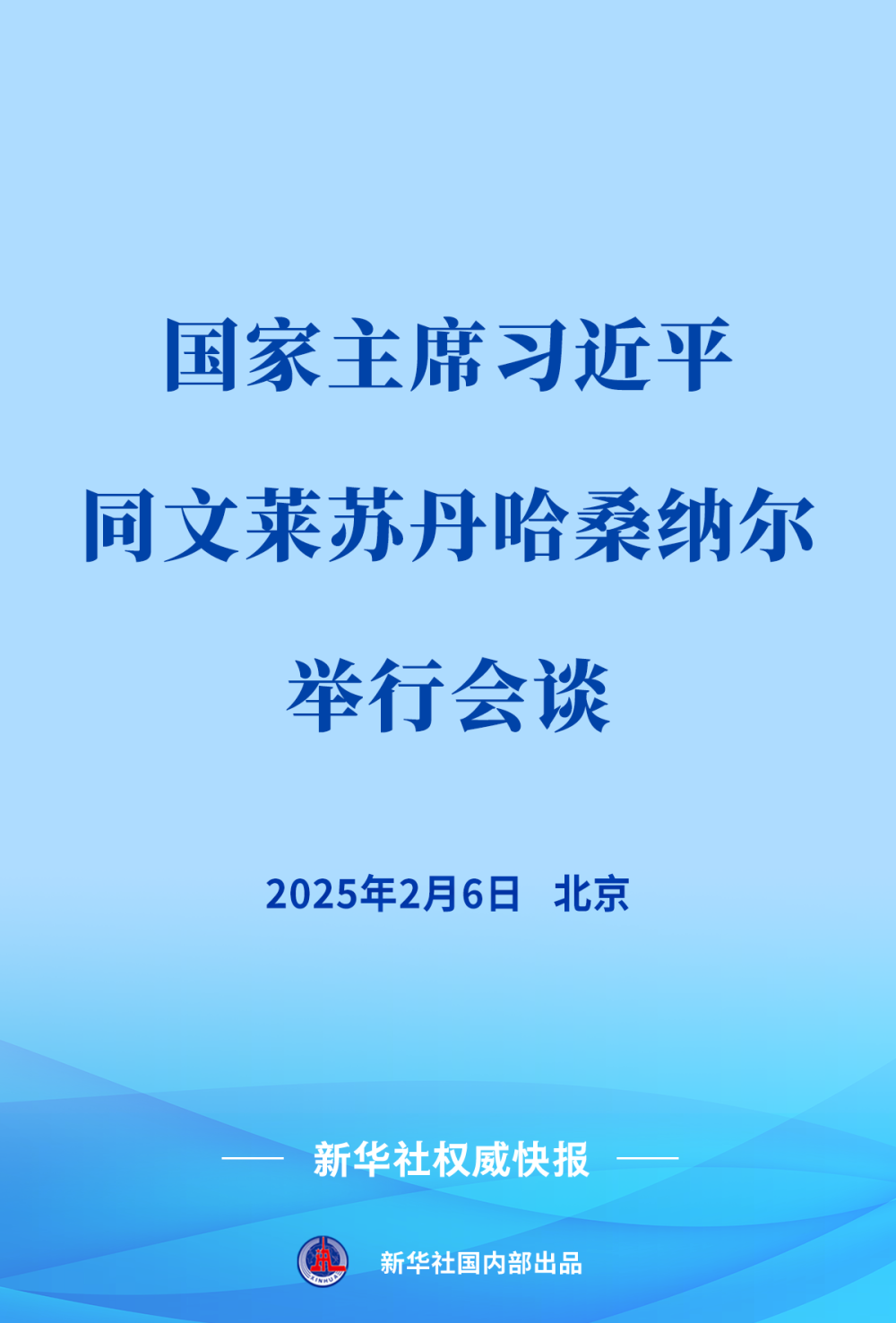 2月6日上午,國(guó)家主席習(xí)近平在北京人民大會(huì)堂同來華進(jìn)行國(guó)事訪問的文萊蘇丹哈桑納爾舉行會(huì)談。