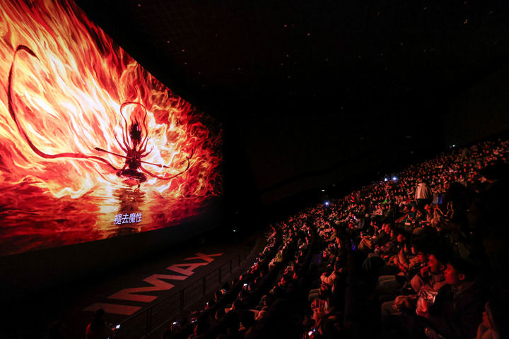 2025年2月25日,觀(guān)眾在貴陽(yáng)越界影城IMAX影廳內(nèi)觀(guān)看電影《哪吒2》。
