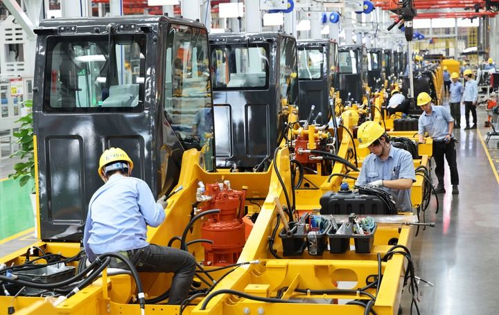 這是在廣西柳州市柳工挖掘機(jī)智慧工廠(chǎng)拍攝的挖掘機(jī)上部機(jī)構(gòu)件組裝線(xiàn)(2024年11月12日攝)。