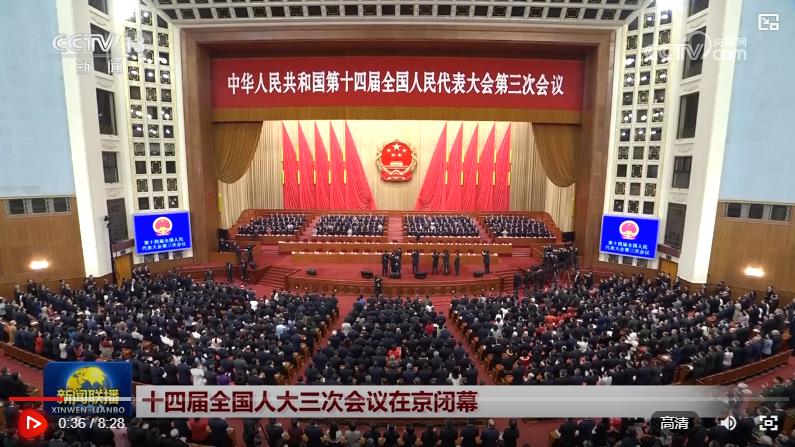 第十四屆全國人民代表大會(huì)第三次會(huì)議在圓滿完成各項(xiàng)議程后,11日下午在北京人民大會(huì)堂閉幕。大會(huì)批準(zhǔn)政府工作報(bào)告、全國人大常委會(huì)工作報(bào)告等。大會(huì)通過關(guān)于修改全國人民代表大會(huì)和地方各級(jí)人民代表大會(huì)代表法的決定,國家主席習(xí)近平簽署第45號(hào)主席令予以公布。