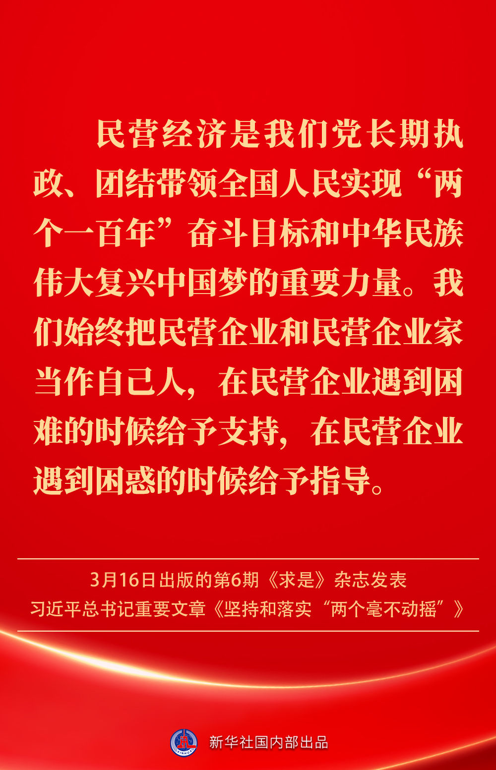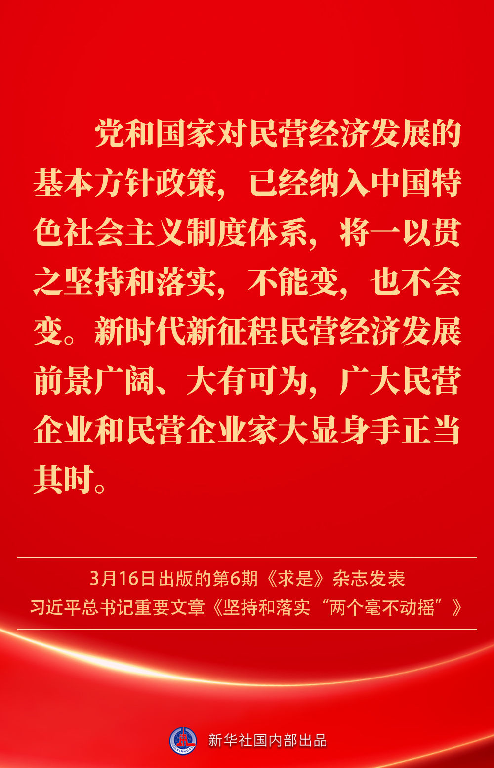 3月16日出版的第6期《求是》雜志發(fā)表習(xí)近平總書記重要文章《堅持和落實(shí)“兩個毫不動搖”》。這是習(xí)近平總書記2013年11月至2025年2月期間有關(guān)重要論述的節(jié)錄。如何認(rèn)識“兩個毫不動搖”?公有制經(jīng)濟(jì)和非公有制經(jīng)濟(jì)是怎樣的關(guān)系?習(xí)近平總書記這樣闡述——